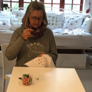 Lisa’s work was recognised by friends who ordered embroidered shoes and clothing for their babies and children. She now sells a range of hand embroidered goods from her home studio. Lisa has taught skills and shared her passion for all styles of embroidery, helping over 50 women find enjoyment and a love for the craft.