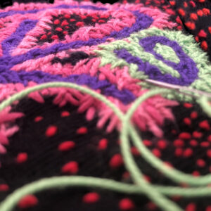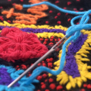 Stacey’s heart-work is as a craftivist. She threads her lifelong passion for fibre handicrafts of crochet, knit, embroidery and appliqué with embodied yarns stitched for advocacy and social justice. Yarn graffiti led her to become a (former undercover, now overt) yarn bomber of guerrilla street art. Her Master of Arts dissertation focussed on craftivism to stop gender-based violence in South Africa. It includes a case study on Story Scarves, a craftivism project for vulnerable teen girls which she founded and facilitated.